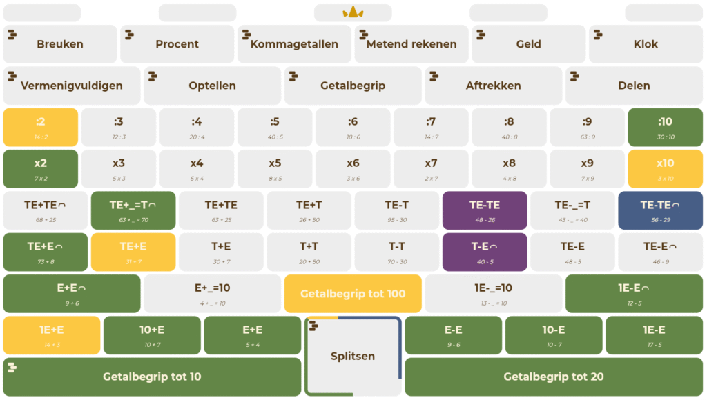 In de leerkrachtenomgeving kan je doorklikken op deze bouwstenen om de onderliggende bouwstenen met hun bijhorende kleuren te zien.