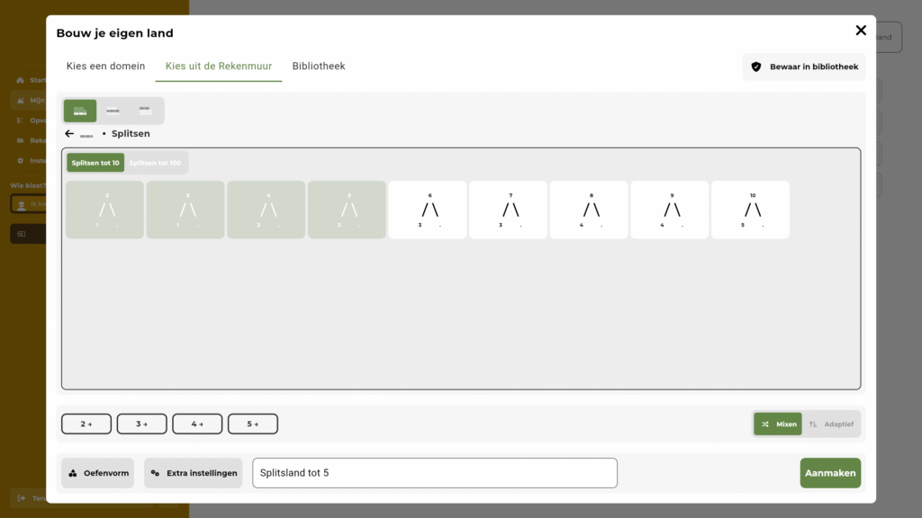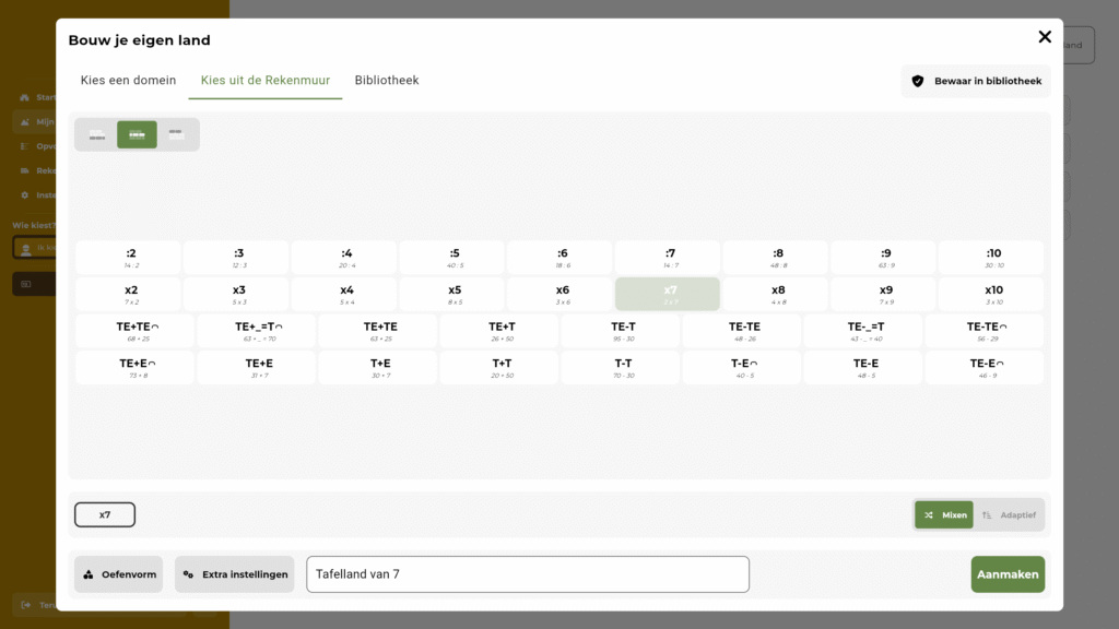 Op deze pagina leer je hoe je oefeningen kunt klaarzetten via de Rekenmuur. Zoals enkel de tafel van 7 of splitsen tot 5.